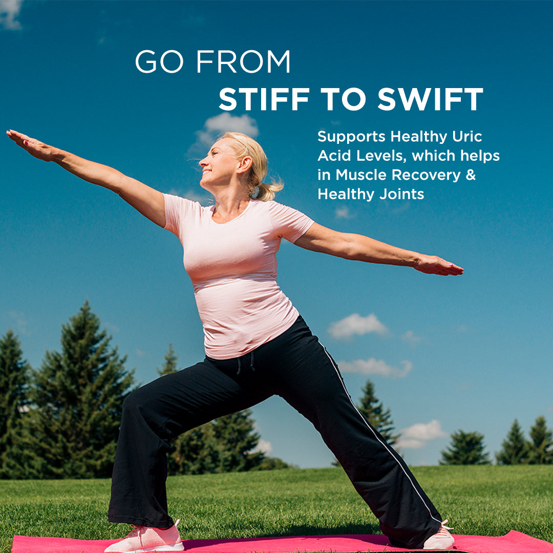 BENEFICIAL FOR GOUT: Montmorency tart cherry has been shown to help manage uric acid levels, which is beneficial for individuals suffering from gout. By supporting healthy uric acid metabolism, it contributes to joint health and overall well-being.